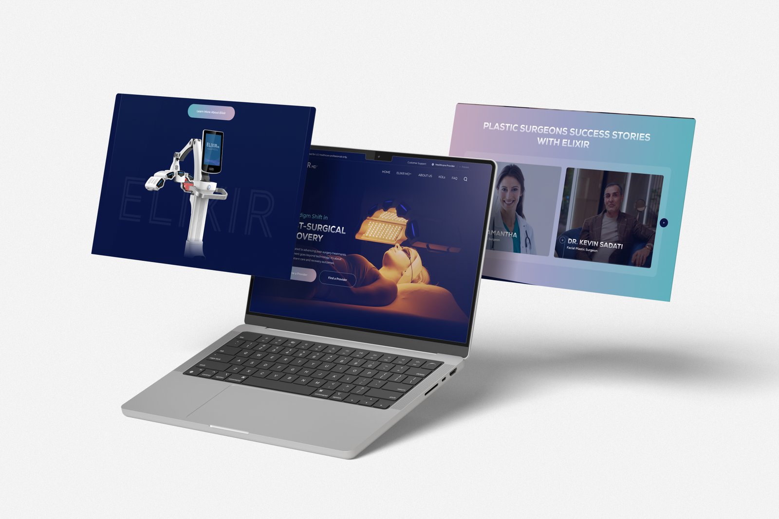 A complete website design and development project for Elixir MD, a U.S.-based medical technology brand providing advanced photo biomodulation devices for plastic surgeons and aesthetic practitioners.
